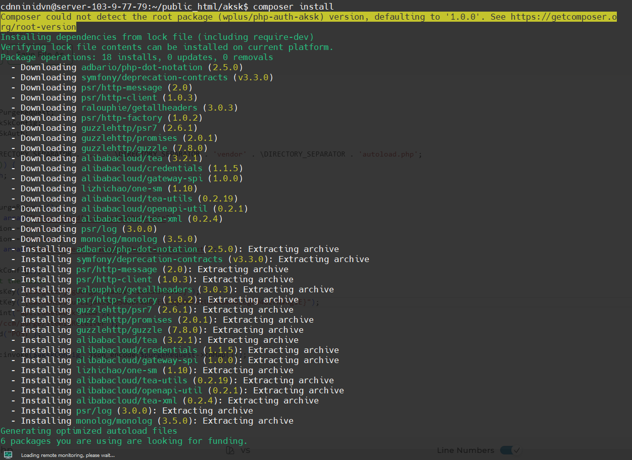 Sau khi tải về và Upload lên server, thực hiện chạy lệnh composer install để cài đặt một số thư viện cần thiết