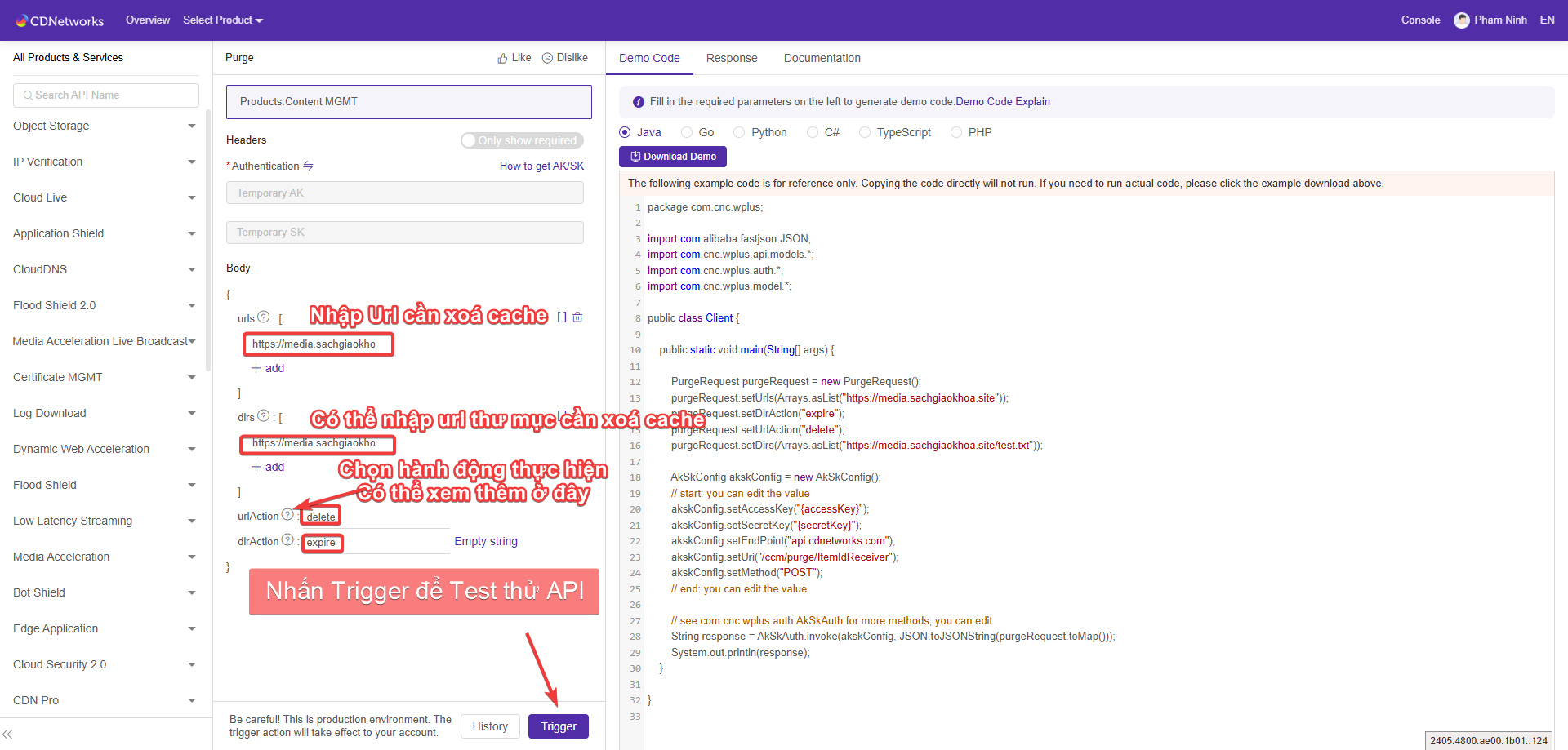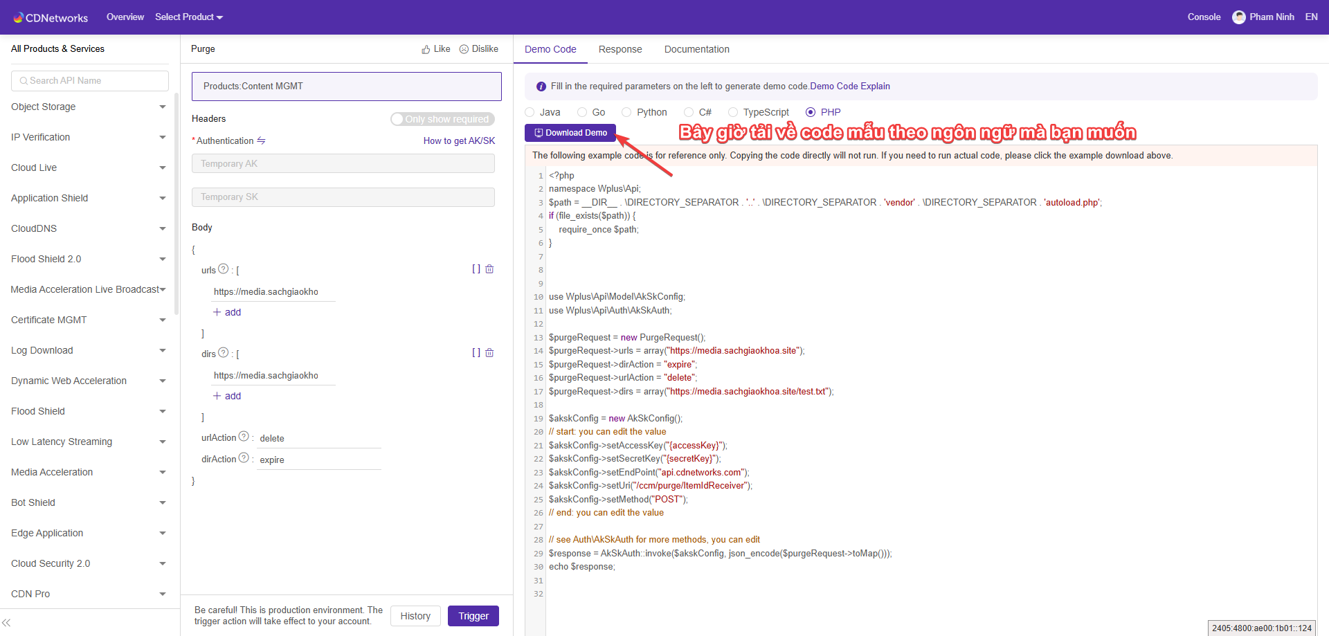 Hướng dẫn xóa cache CDN bằng API CDNetworks#