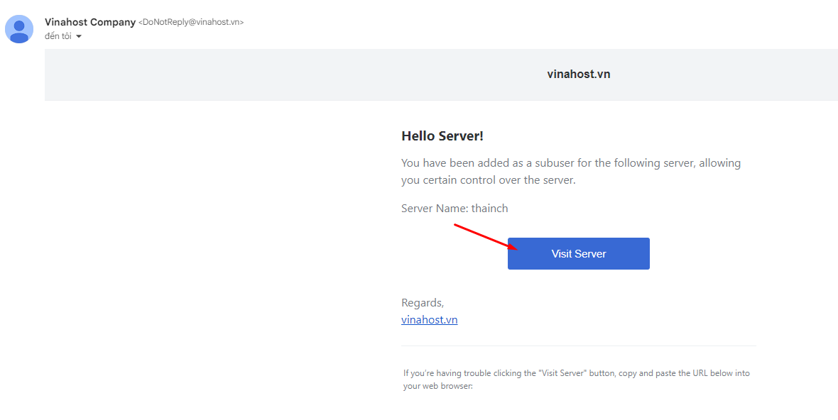Kiểm tra mail, user phụ sẽ thấy đường dẫn vào server