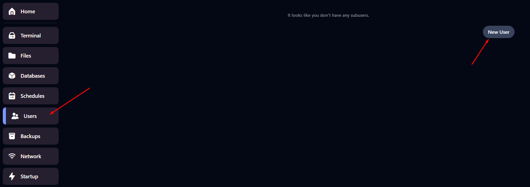 Truy cập Panel và chuyển qua tab User, chọn New User để tạo tài khoản phụ.