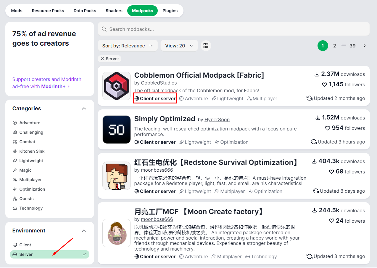 Lưu ý: Nên kiểm tra xem modpack có hỗ trợ bản cài đặt cho server hay không để tránh xảy ra lỗi trong quá trình cài đặt.