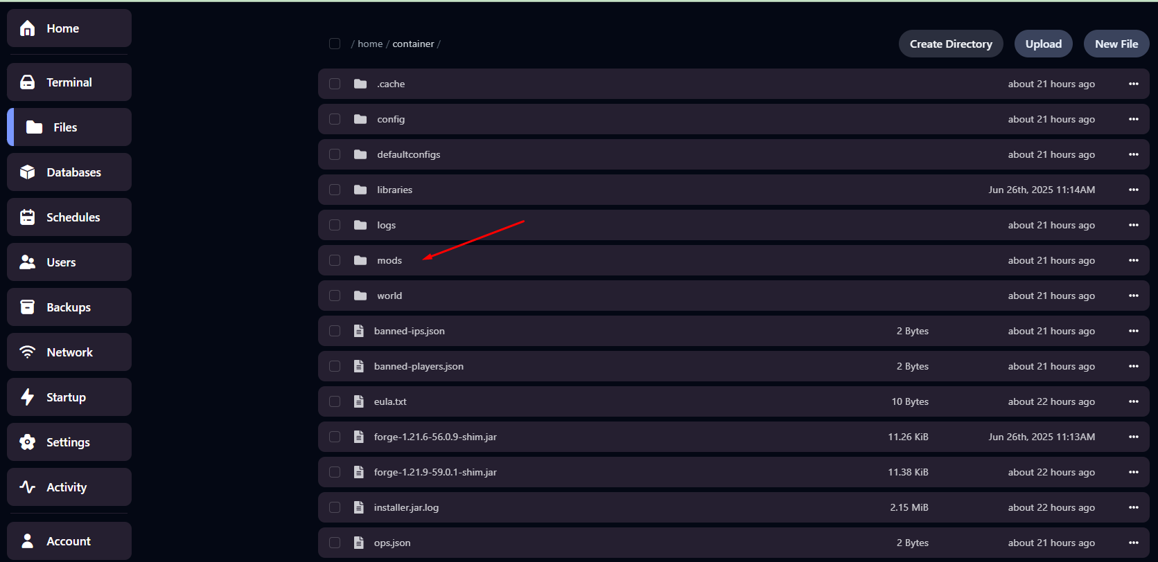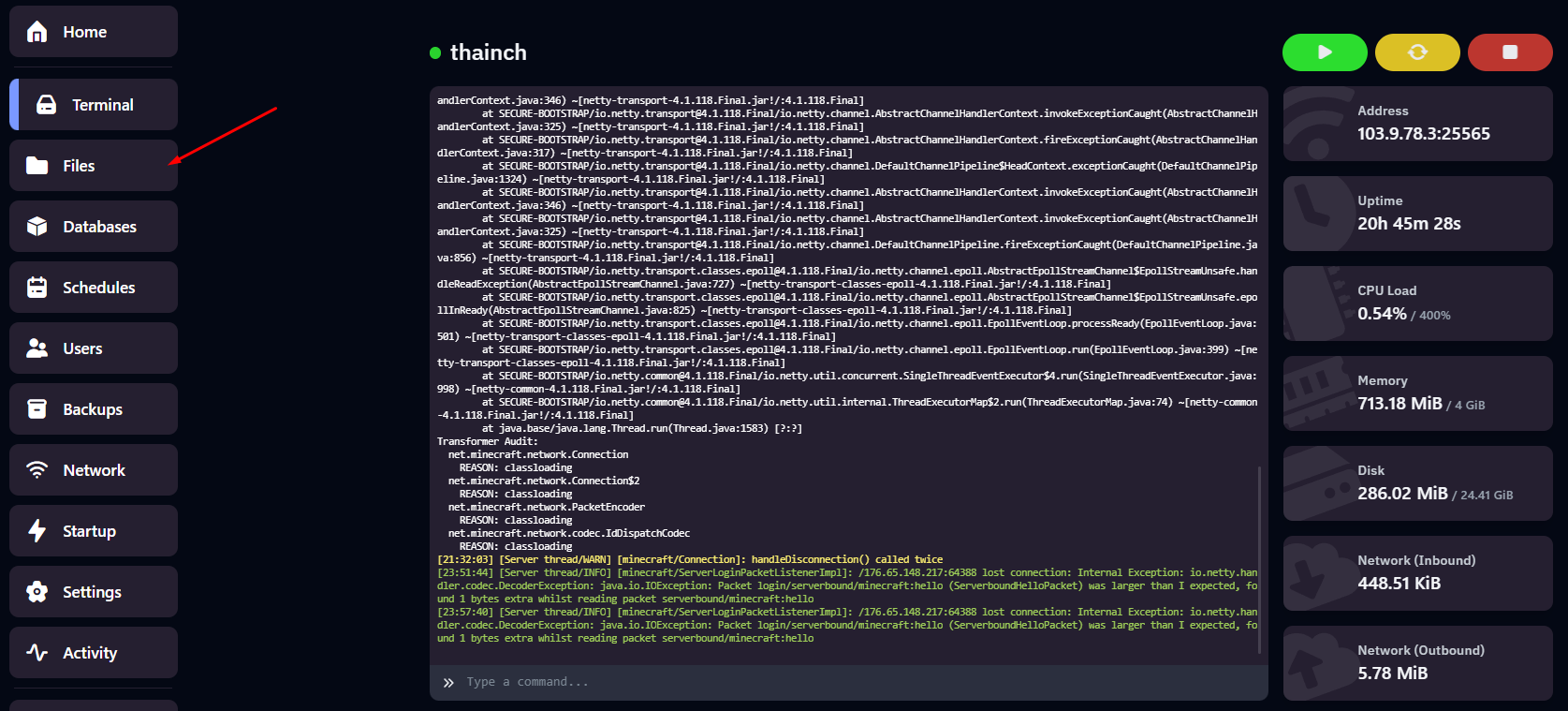 Sau khi đăng nhập vào Panel quản lý Server Minecraft, ta chọn vào mục Files